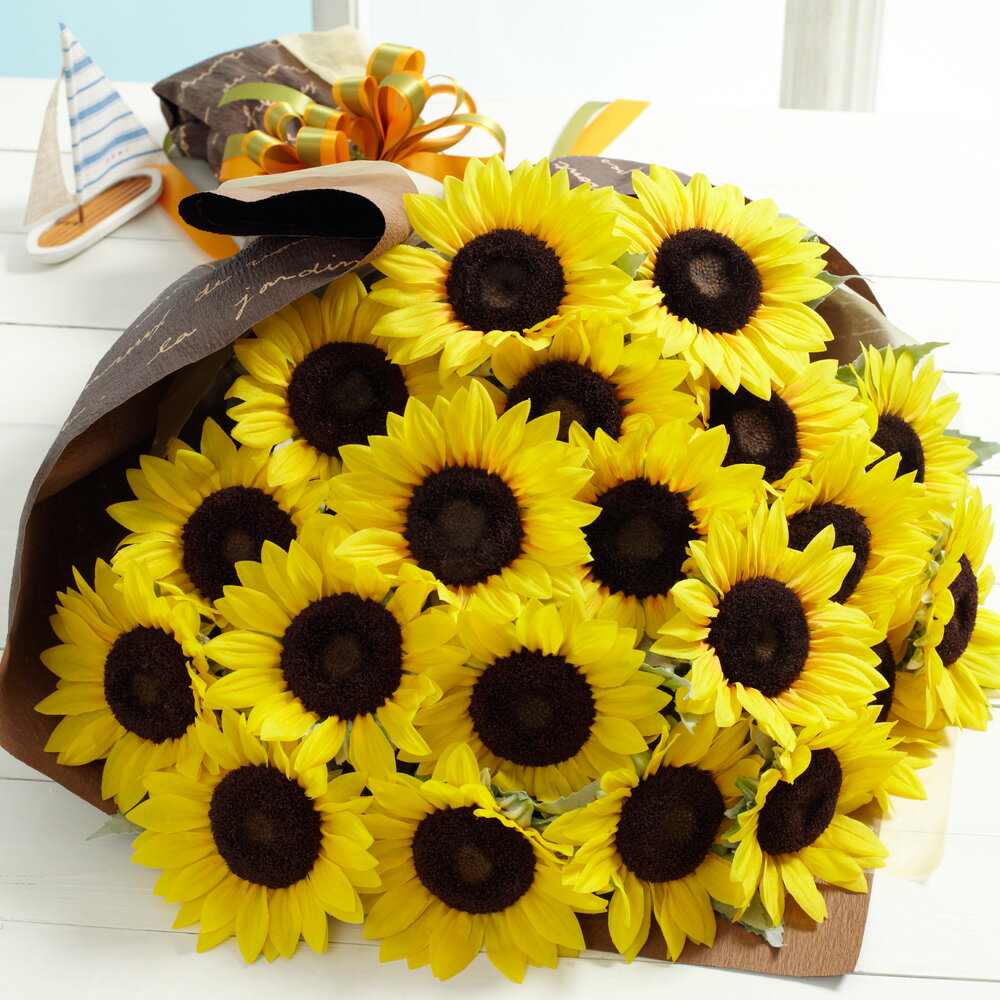 価格: 4,860円 レビュー評価:0.0 レビュー数:0 ※アイコンの説明はこちら 太陽の方向に咲くヒマワリは、あたたかく見守り続けてくれているお父さんのよう。ヒマワリの花言葉は「憧れ」。家族を支えるお父さんはいつまでも憧れの人です。そんなお父さんのようなヒマワリの花束を、日頃の感謝の気持ちを込めて贈りましょう。 花材 ヒマワリ×20本 資材 ラッピング、リボン、お手入れ説明付き サイズ 幅約40cm、長さ約70cm 説明 花材・資材・セット内容以外の写真の小物は商品に含まれません。 ※2018年6月15日(金)10:00までの受付で父の日までにお届けします。 ※北海道・沖縄、離島などの一部の地域を除いて、2018年6月16日(土)15:00まで父の日のお届けを承ります。 それ以降の購入では18日以降のお届けとなります。 (更新日時:2018/05/21 17:26) Supported by 楽天ウェブサービス |